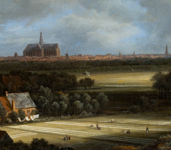 現場でのスケッチを持帰り、アトリエでキャンバスに向き合うスタイルでは、《デルフトの眺望》に迫ることはできない…岩田の真意はここにあるのではないでしょうか。フェルメールとほぼ同時代のオランダに、ヤーコプ・ファン・ロイスダール(Jacob van Ruisdael、1628年頃〜1675年)という著名な風景画家がいますが、その作品と比べてみると、《デルフトの眺望》では景観の構成要素が静物画のオブジェやそれらの置かれた空間のように扱われていることがわかります。